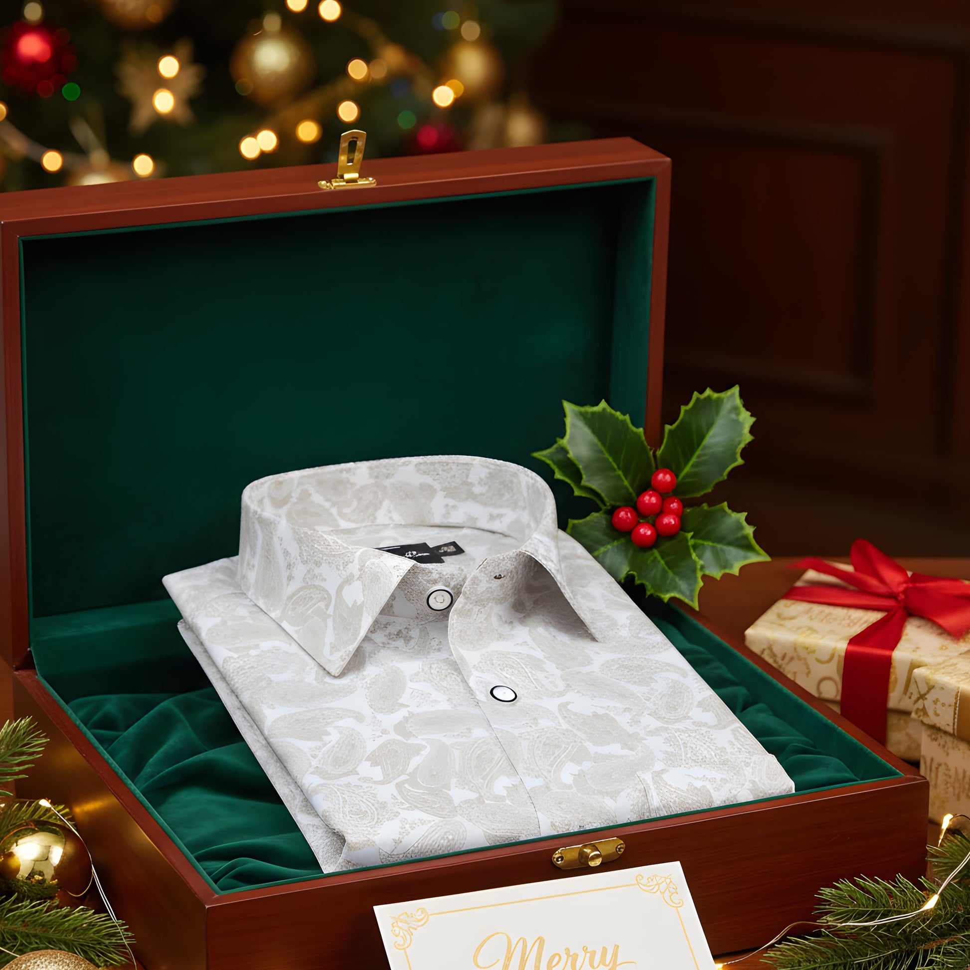 Gloster Cotton White with Fone Pathan Print Shirts for Men