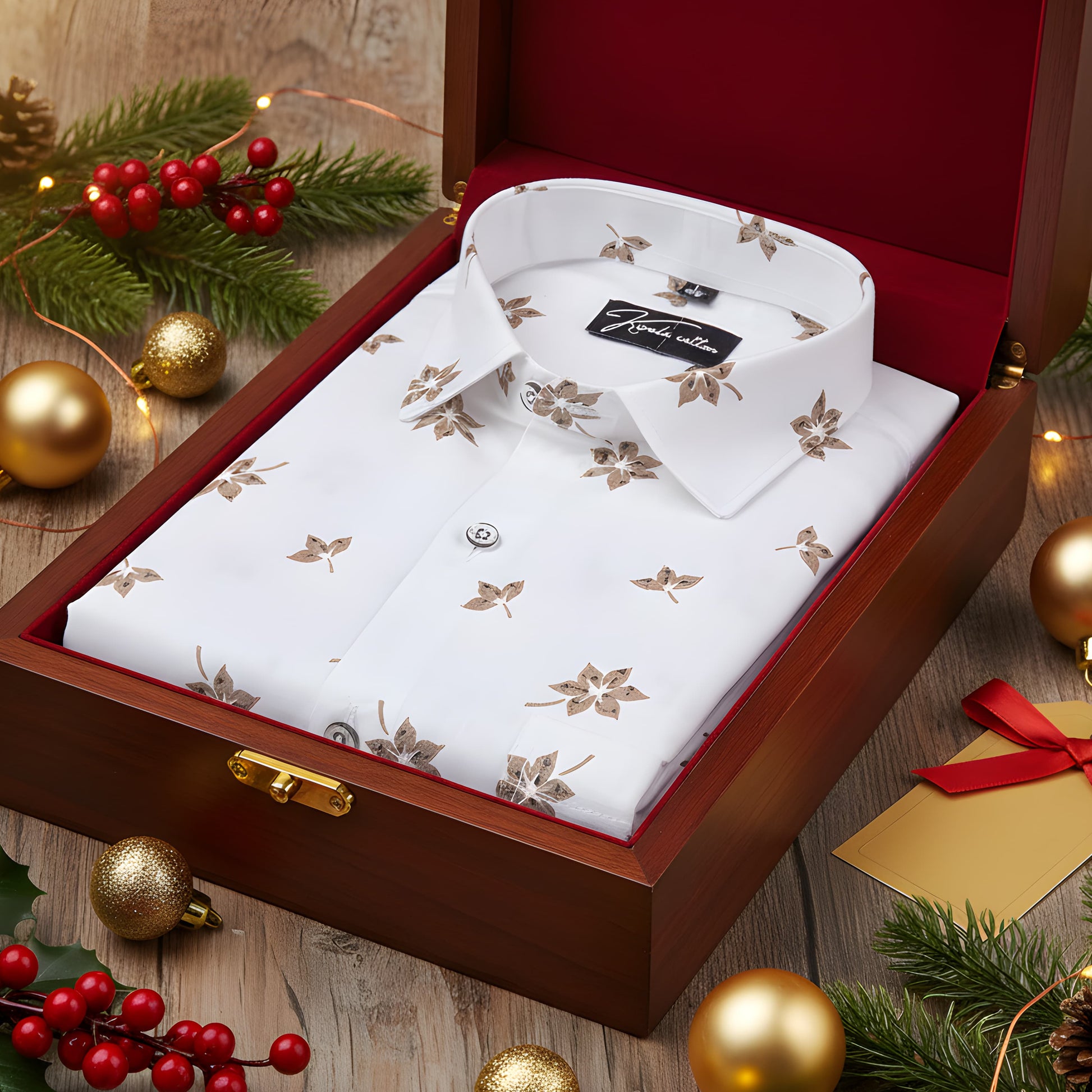 Turkey Linen White With Brown Flower Shirts for Men